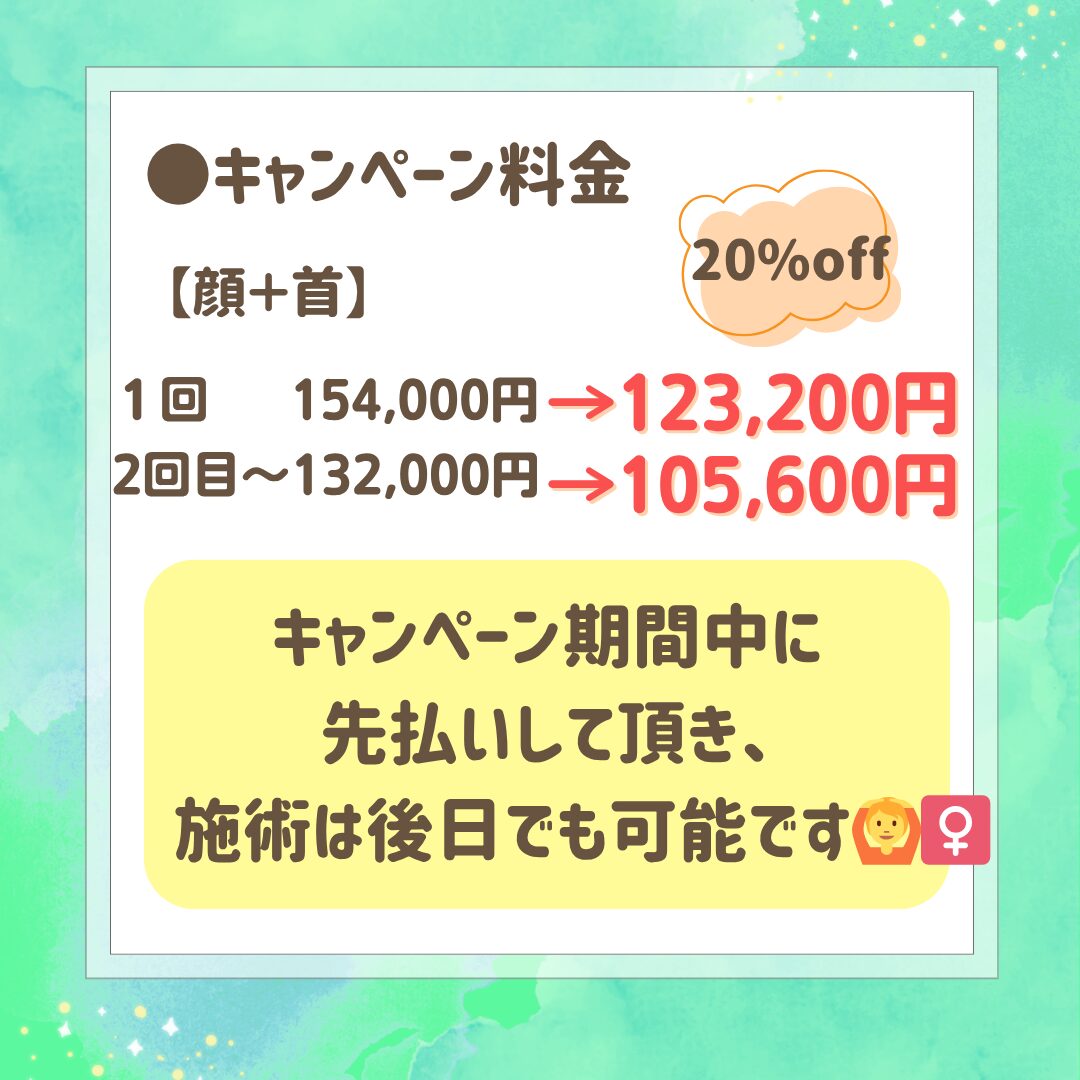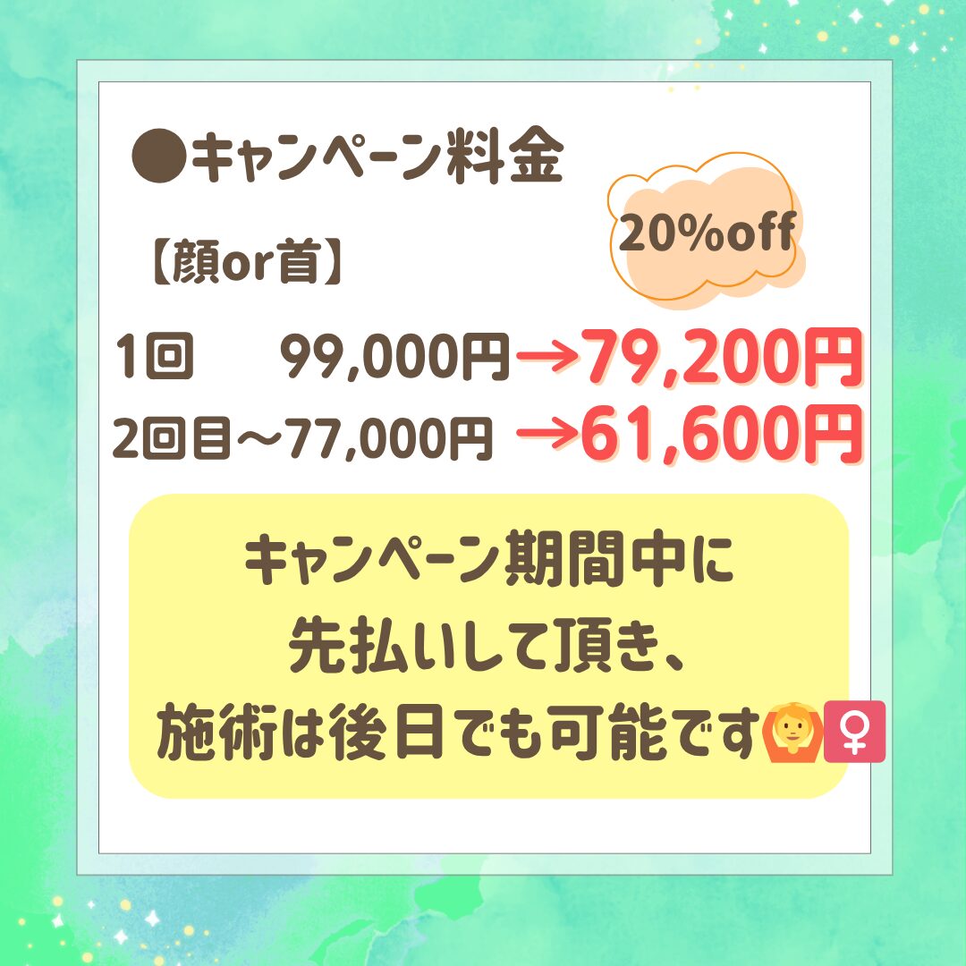 キャンペーン期間中に先払いして頂き、施術は後日でも可能です🙆♀️✨