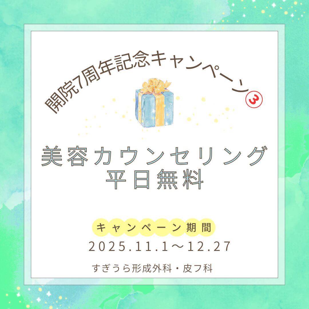 そこで日頃の感謝をこめて、11月1日〜12月27日までの期間限定で、開院7周年記念キャンペーンを3つ実施します🤩🎊